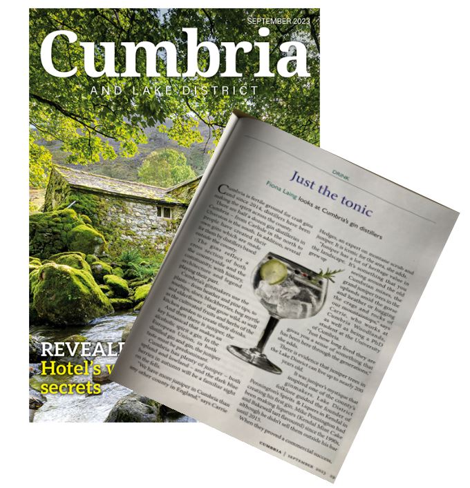 Of course, gin needs juniper and Cumbria has plenty of it – both upland and lowland – and the dark blue berries in autumn will be a familiar sight up on the fells.